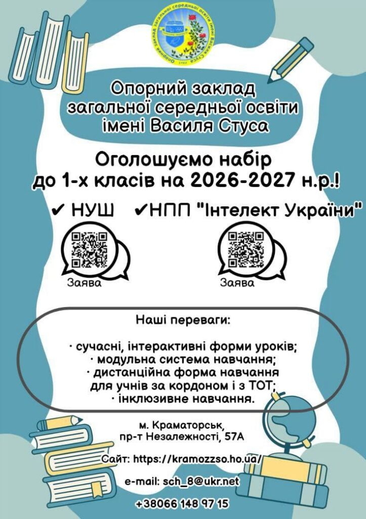 © 2025 Опорний заклад загальної середньої освіти імені Василя Стуса Краматорської міської ради Донецької області